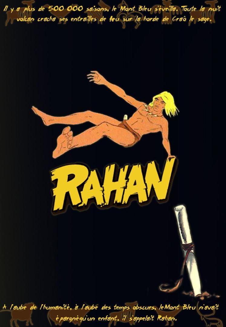 Résumé : Il y a plus de 500 000 saisons, le Mont Bleu s'éveilla. Toute la nuit, le volcan cracha ses entrailles de feu sur la horde de Craô le sage. A l'aube de l'humanité, à l'aube des temps obscurs, le Mont Bleu n'avait épargné qu'un enfant... Le bébé orphelin est recueilli par la tribu de Craô le sage installée sur les flancs du Mont Bleu. Il reçoit alors le nom de Rahan. Durant son adolescence, le Mont Bleu entre en éruption et fait disparaître tous les siens. Avant sa mort, Craô remet à Rahan son collier de griffes et lui fait promettre de respecter les symboles qui lui sont associés : courage, loyauté, générosité, ténacité et sagesse. Rahan part alors à la recherche d'autres hommes, "ceux qui marchent debout". Pour trouver sa route, Rahan fait tournoyer son coutelas en ivoire sur le sol, et suit la direction indiquée par la lame. Chaque rencontre de tribus est alors synonyme d'affrontements, de questions mais aussi de nouvelles connaissances aussi bien pour lui que pour ceux qu'il rencontrera...