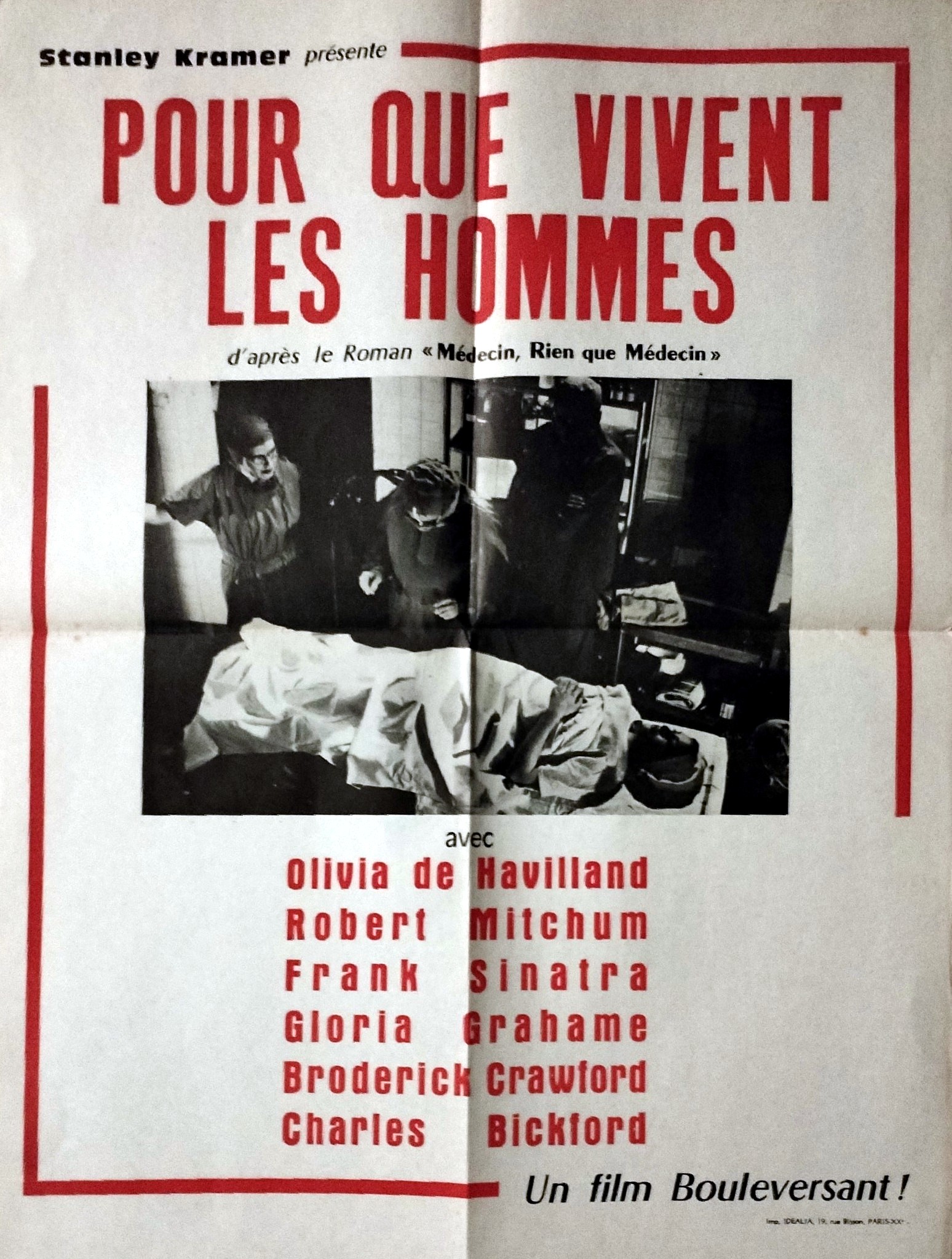 Acteurs principaux : Charles BICKFORD, Lon CHANEY JR., Broderick CRAWFORD, Olivia DE HAVILLAND, Gloria GRAHAME, Myron MCCORMICK, Robert MITCHUM, Harry MORGAN, Frank SINATRA, Jesse WHITE