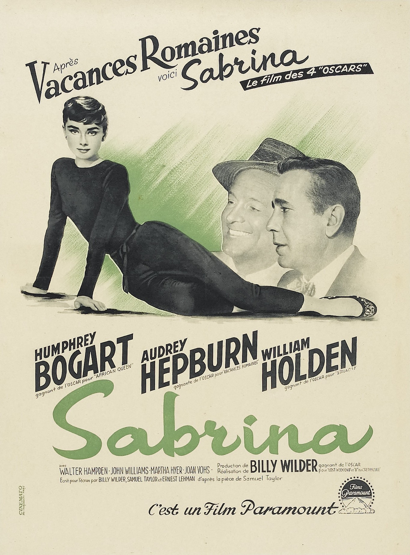 Résumé : Dans leur fastueuse résidence de Long Island, les Larrabee, richissimes industriels, emploient une importante domesticité à laquelle ils n'accordent pas, hors des questions de service, la moindre attention. Or, la délicieuse fille du chauffeur, Sabrina Fairchild, est éperdument amoureuse de David, l'enfant terrible et volage de la famille, qui ne la remarque même pas. Pour tout à la fois la guérir de son amour impossible et lui donner un métier, son père envoie Sabrina étudier la cuisine à Paris. À son retour, deux ans plus tard, Sabrina, transformée, fait sensation...
